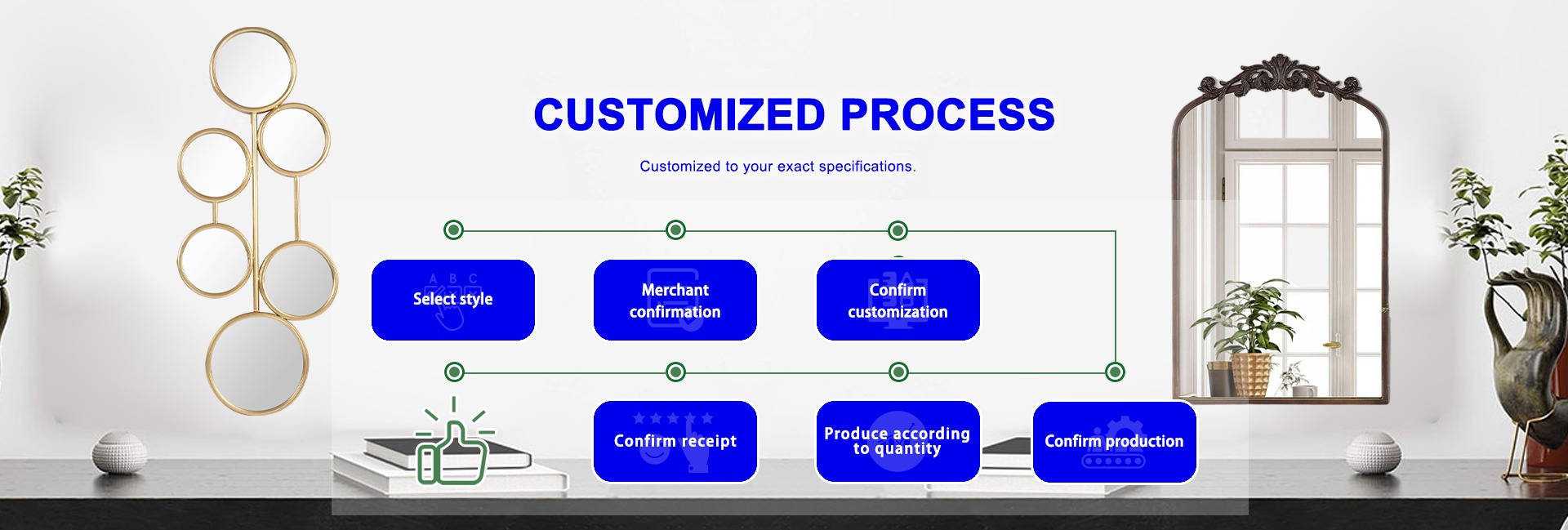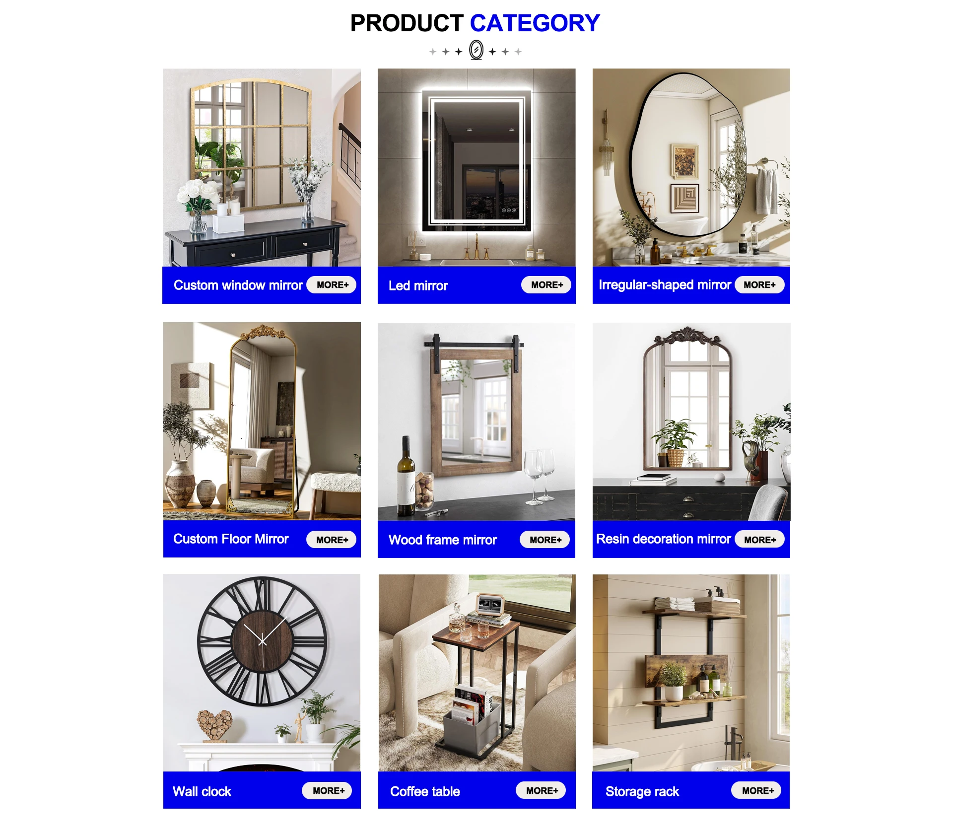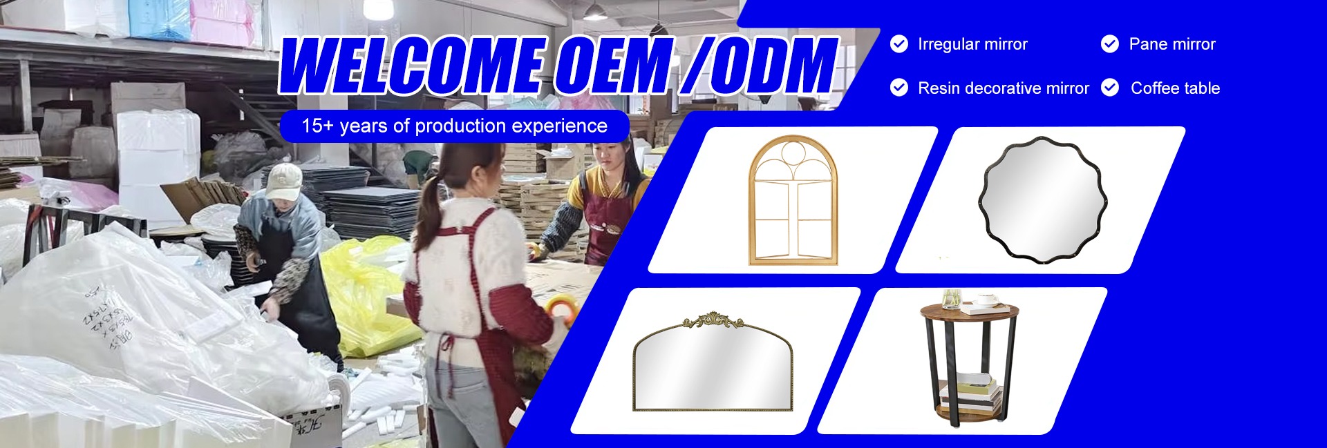 Productos principales:Espejo de piso, Espejo en forma, Espejo redondo, Estante de almacenamiento, Mesa de centro