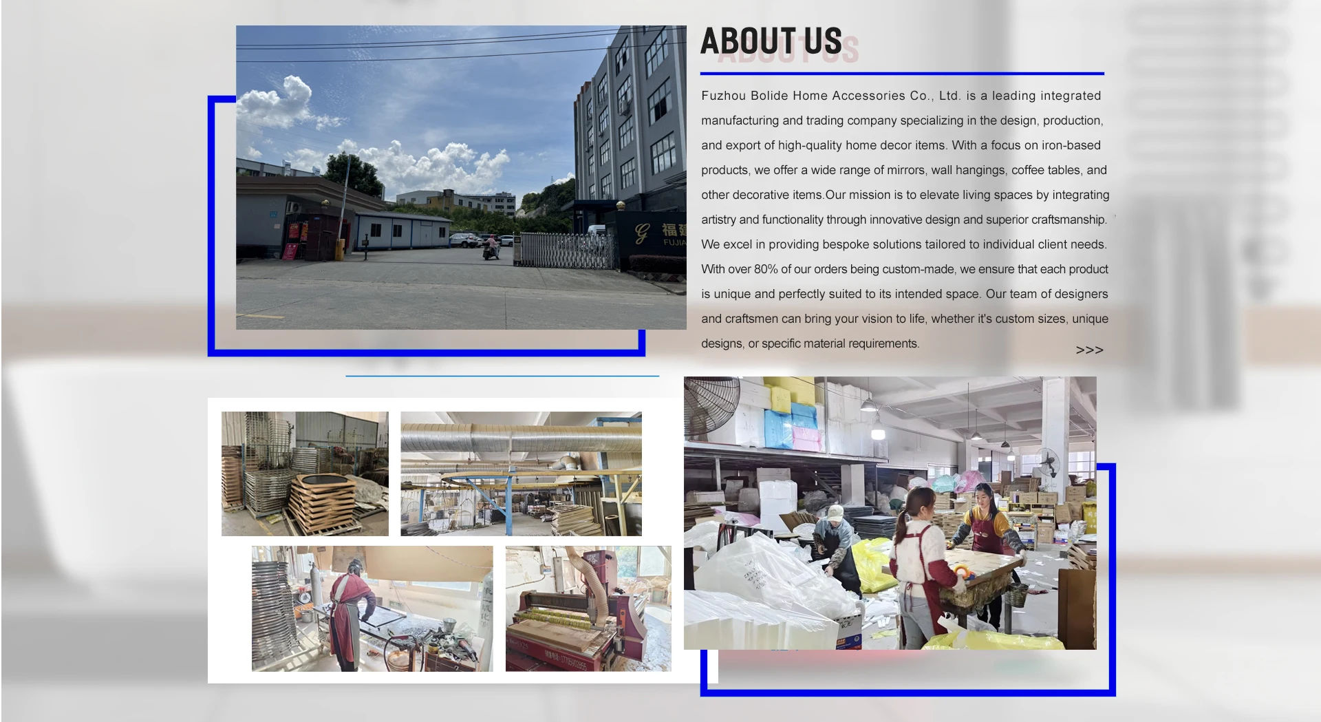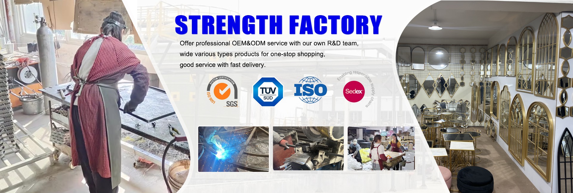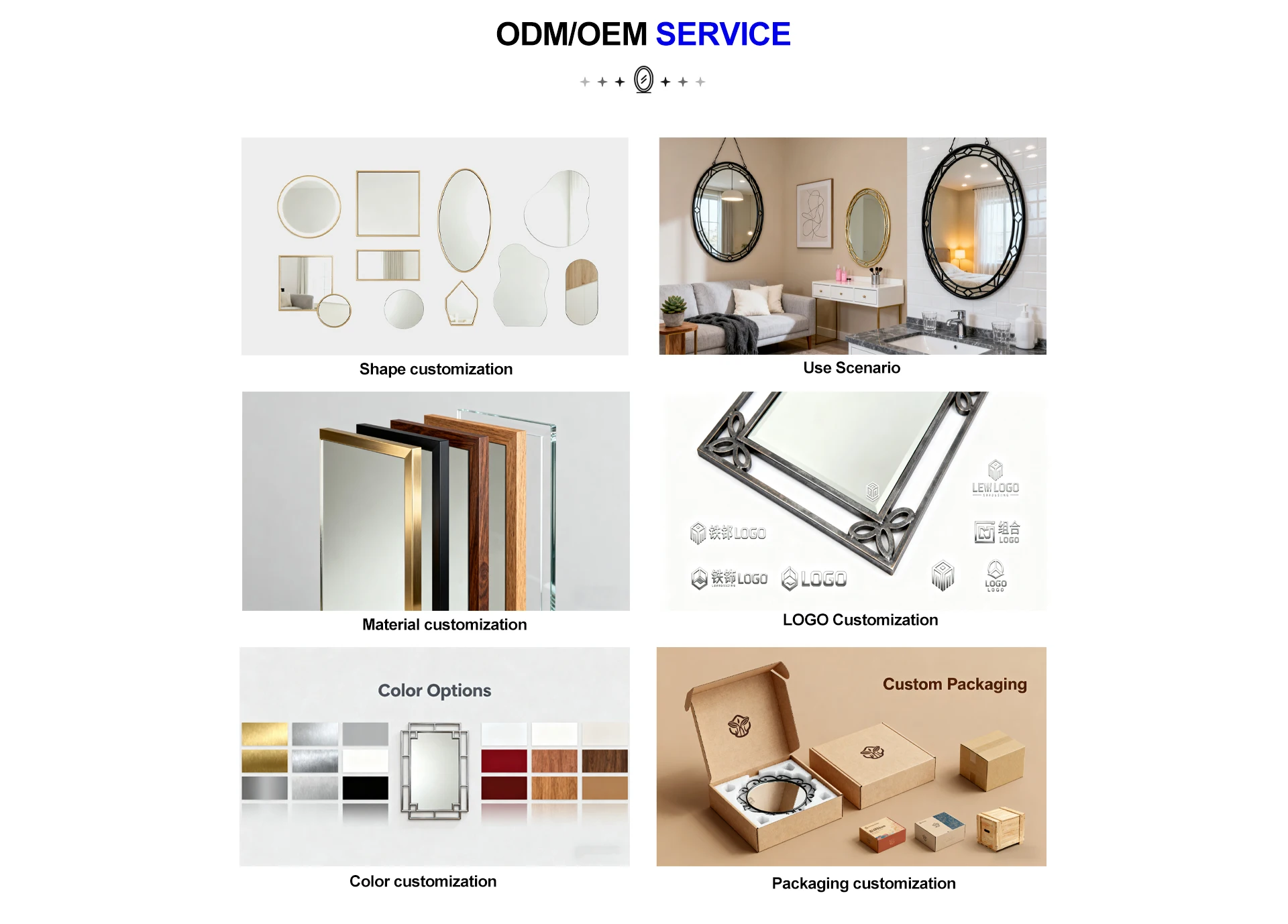 Productos principales:Espejo de piso, Espejo en forma, Espejo redondo, Estante de almacenamiento, Mesa de centro